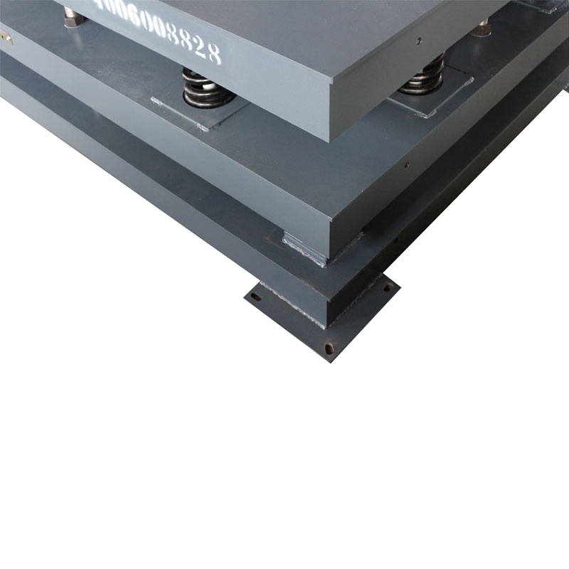 通過八根導(dǎo)柱,使八個高精度螺旋壓縮彈簧預(yù)緊結(jié)合在一起,實現(xiàn)緩沖,抗沖擊力強。在有強烈沖擊的載荷稱重時,瞬間沖擊力會遠大于衡器的最大稱重,此時使用緩沖秤能有效降低被稱重的沖擊力,大大延長秤體及傳感器的使用壽命。